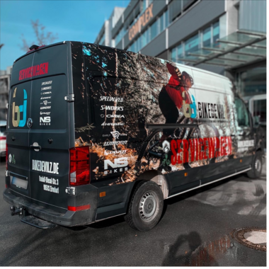 Beim Bekleben von Fahrzeugen werden nicht nur Schriften und Logos gewünscht, sondern häufig auch Vollverklebungen. Vollverklebungen verpacken sozusagen das komplette Fahrzeug. Bei größeren und lange andauernden Werbekampagnen sind diese besonders sinnvoll, da voll verklebte Fahrzeuge extrem auffallen. Außerdem können so auch große Bildelemente und umfangreiche Grafiken auf dem Fahrzeug verwirklicht werden.